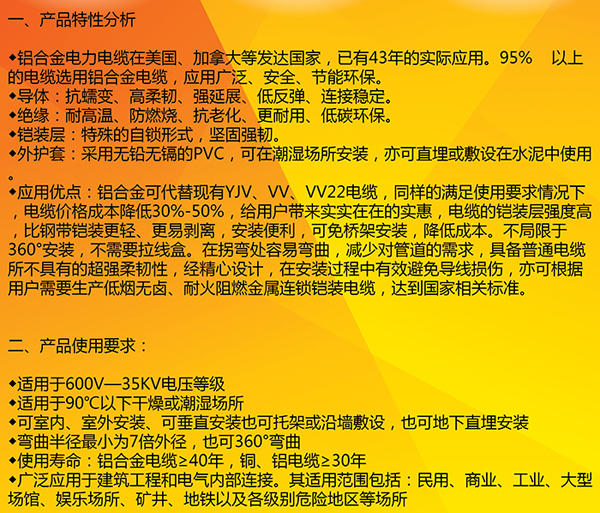 鋁合金電纜:鋁合金電纜ZR-YJLHV 瀏覽:3388